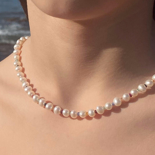 Collar de piedras preciosas de perla y zafiro multicolor