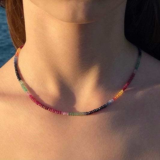 Collar de rubí, esmeralda y zafiro arcoíris