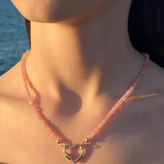 Collar con mosquetón de ópalo rosa