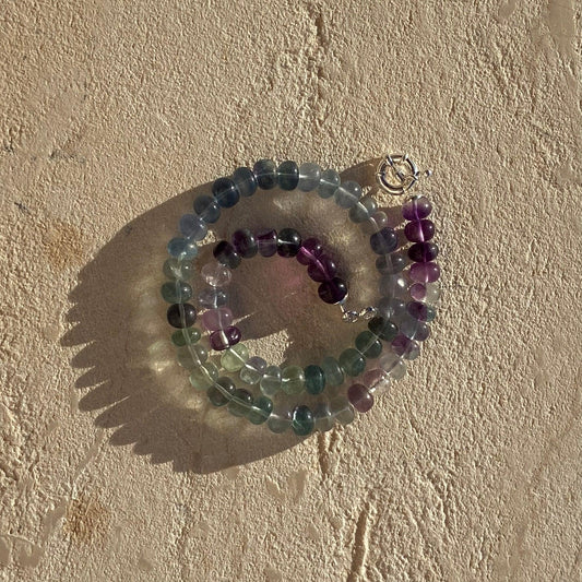 Collar de fluorita arcoíris con cierre de plata de ley