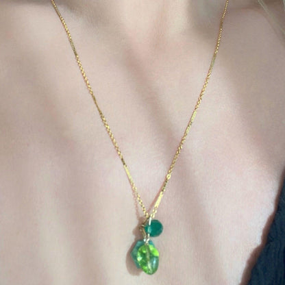 Cadena rellena de oro de 14 quilates, ágata verde, crisofase, cuarzo verde